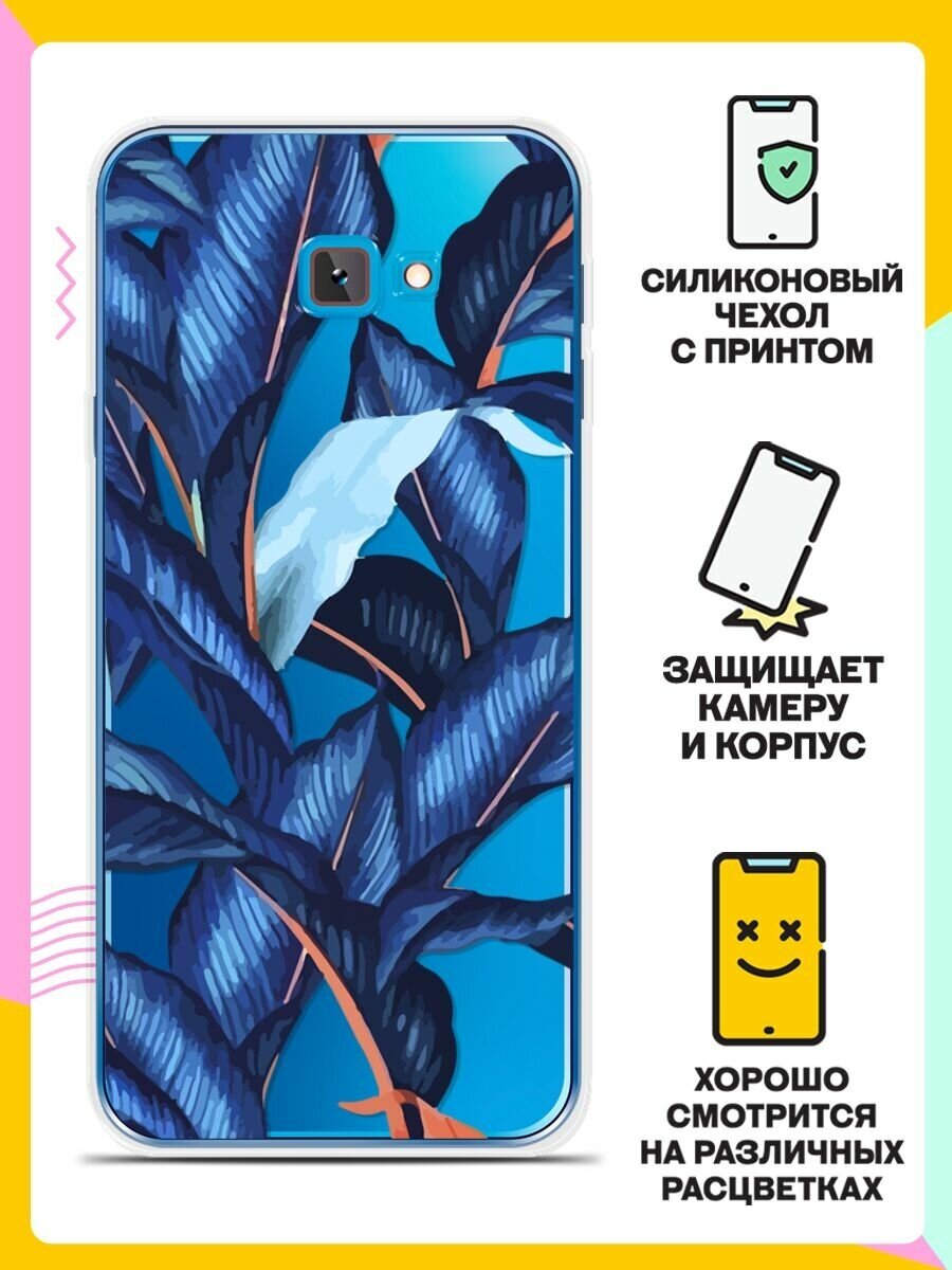 Силиконовый чехол на Samsung Galaxy J4+ Синие листья / для Самсунг Галакси Джей 4 Плюс 2018 информация: