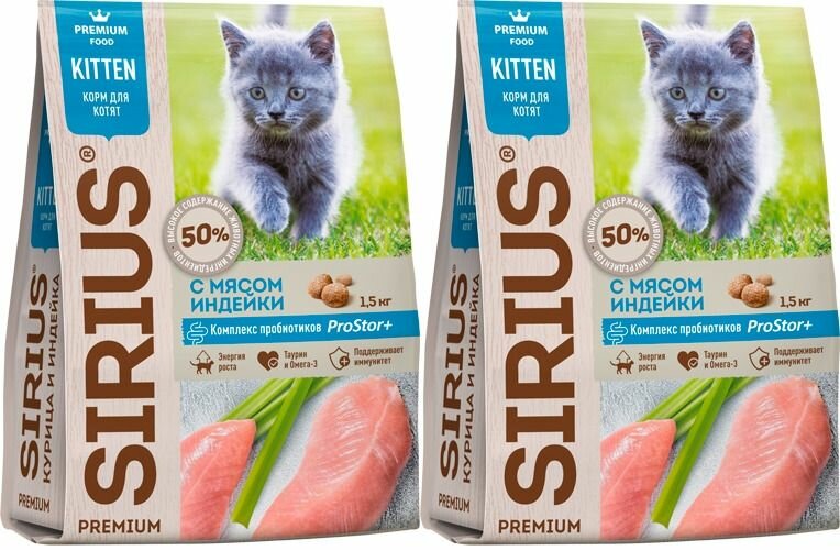 Sirius Сухой корм для котят с мясом индейки 1,5кг., 2 уп.