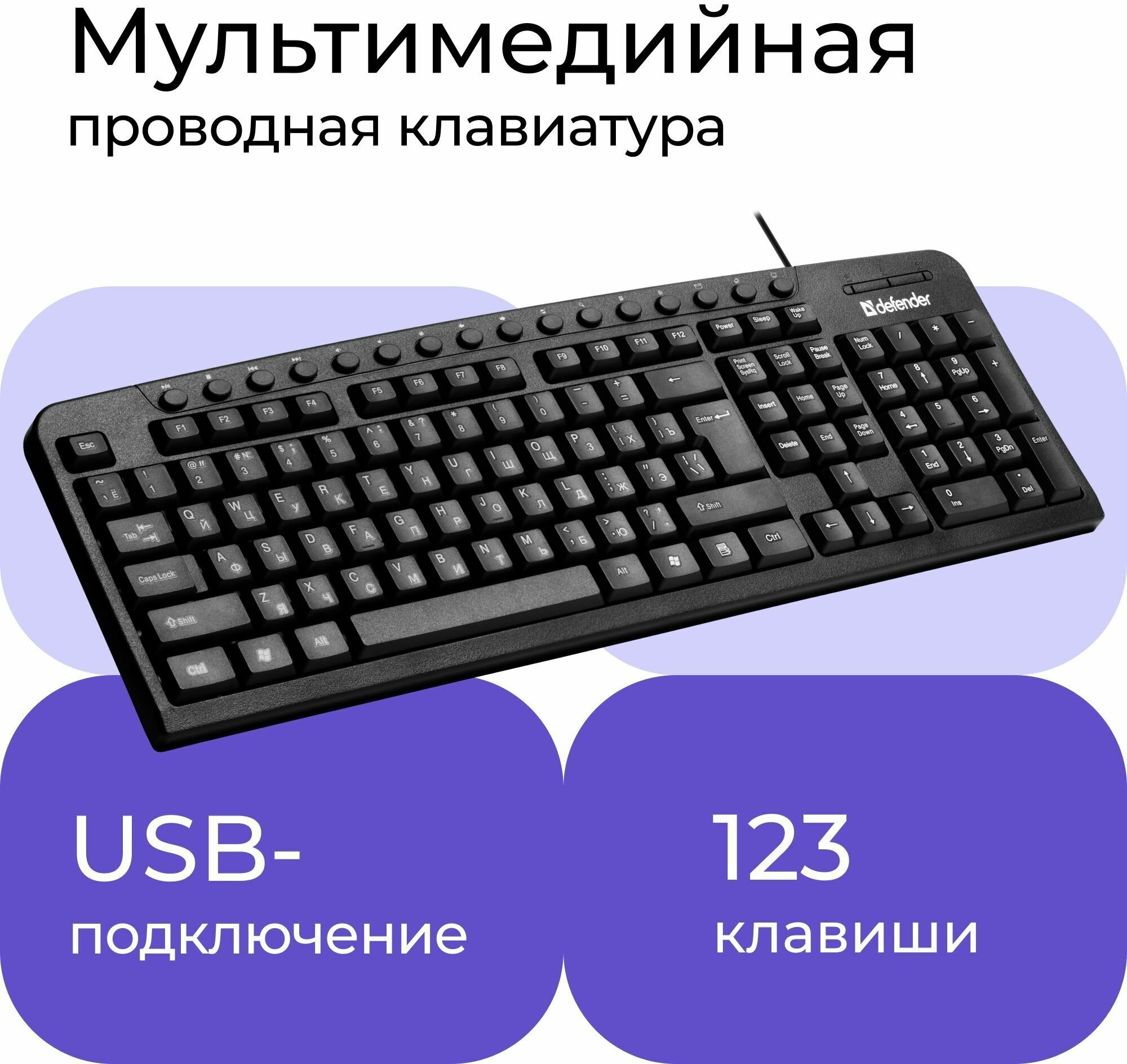 Клавиатура Defender FOCUS HB-470 RU BLACK информация: