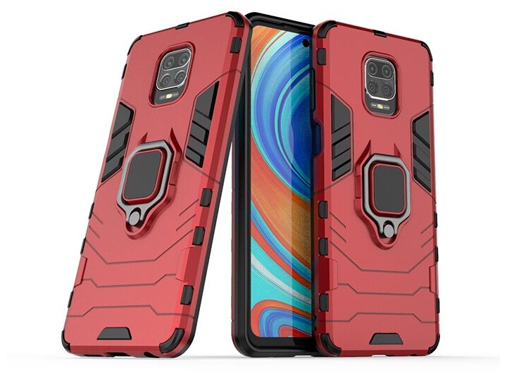 Противоударный чехол с кольцом Panther Case для Xiaomi Redmi Note 9 Pro / 9 Pro Max / Note 9S красный информация:
