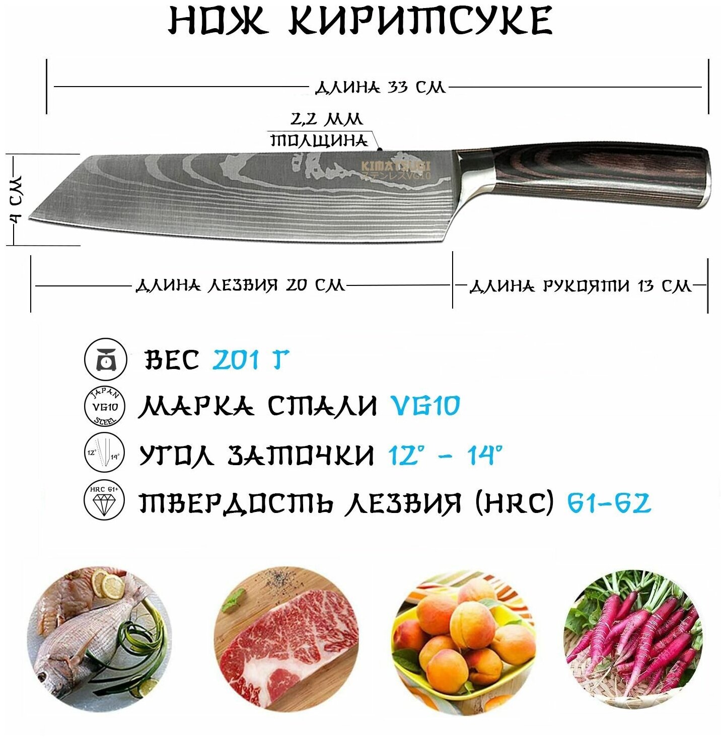 Отзывы на Японский кухонный нож Киритсуке Kimatsugi Akogare / Сталь VG10 / Длина лезвия 20 см / В ножнах