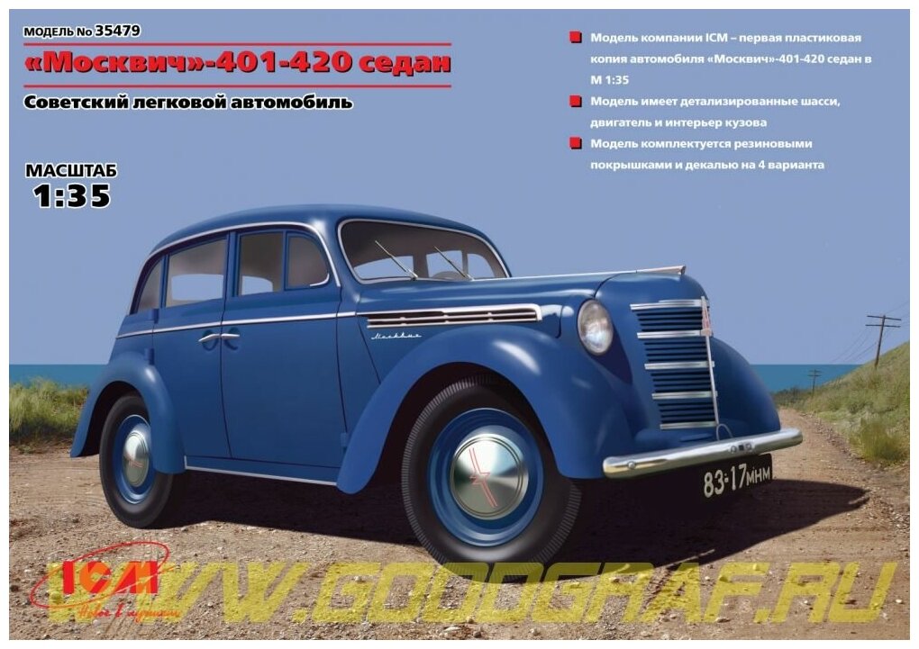 ICM Сборная модель Советский легковой автомобиль Москвич-401-420, 1/35 информация: