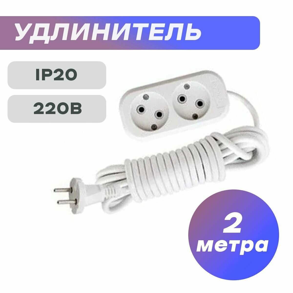 Удлинитель 2х2м без заземл. 10А IP20 Е-202 АБС-пл. ПВС 2х0.75 UNIVersal 9631959 информация: