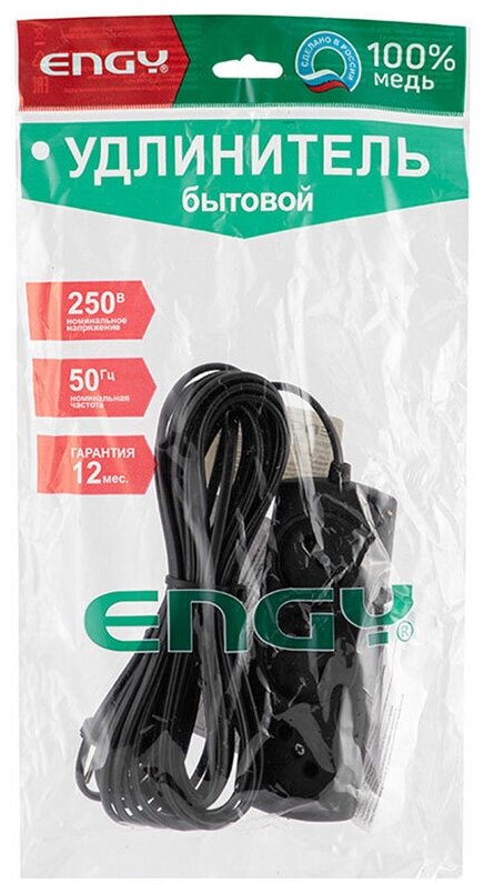 Удлинитель Engy Эконом 7м/3роз. (ШВВП 2х0 75) черный информация: