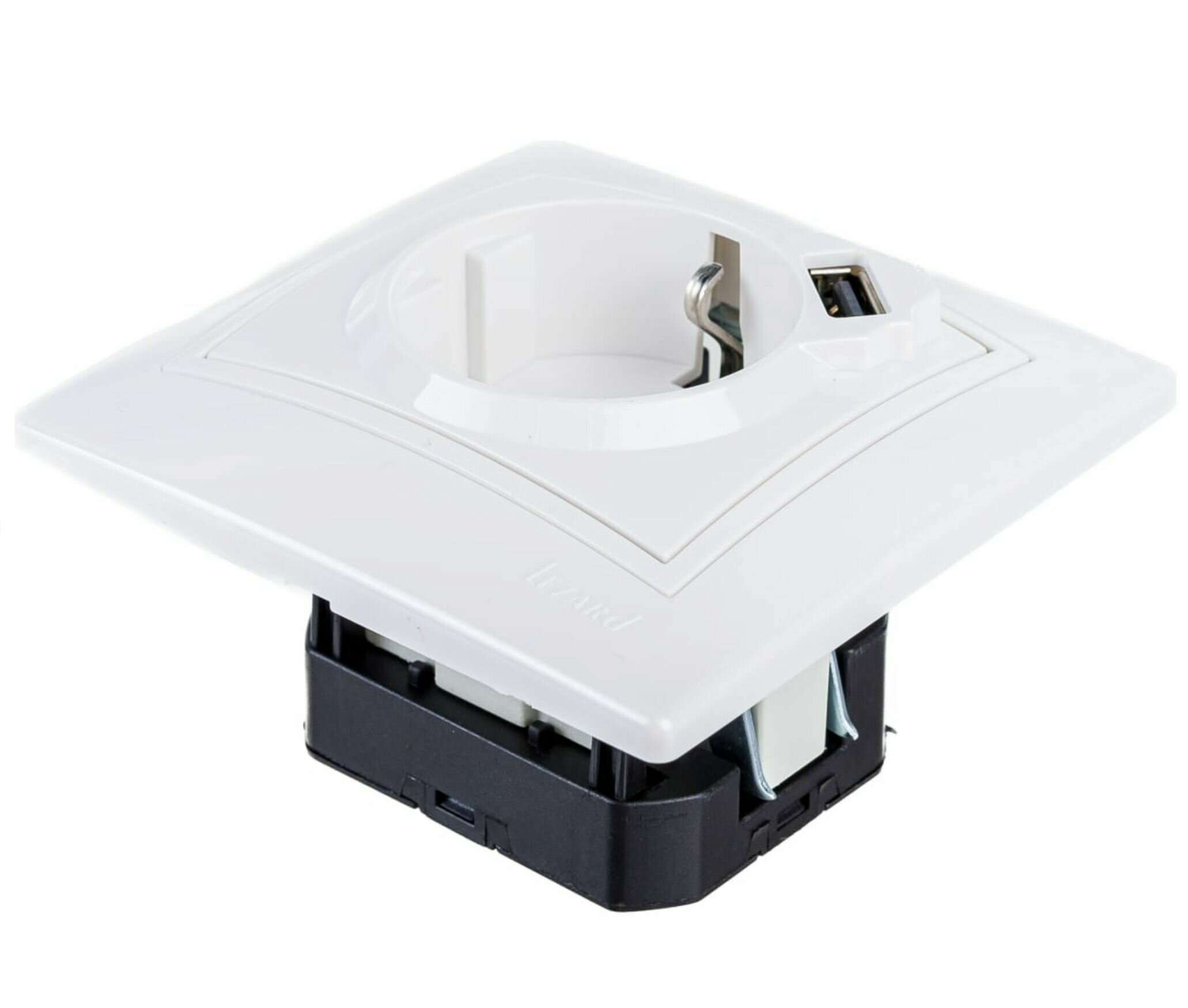 Розетка 1-м СП Mira 16А с заземл. + USB разъем бел. LEZARD 701-0202-181 информация: