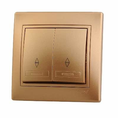 Выключатель проходной 2-кл. СП Мира 10А IP20 со вставкой зол. метал. LEZARD 701-1313-106 (8шт.в упак.) информация: