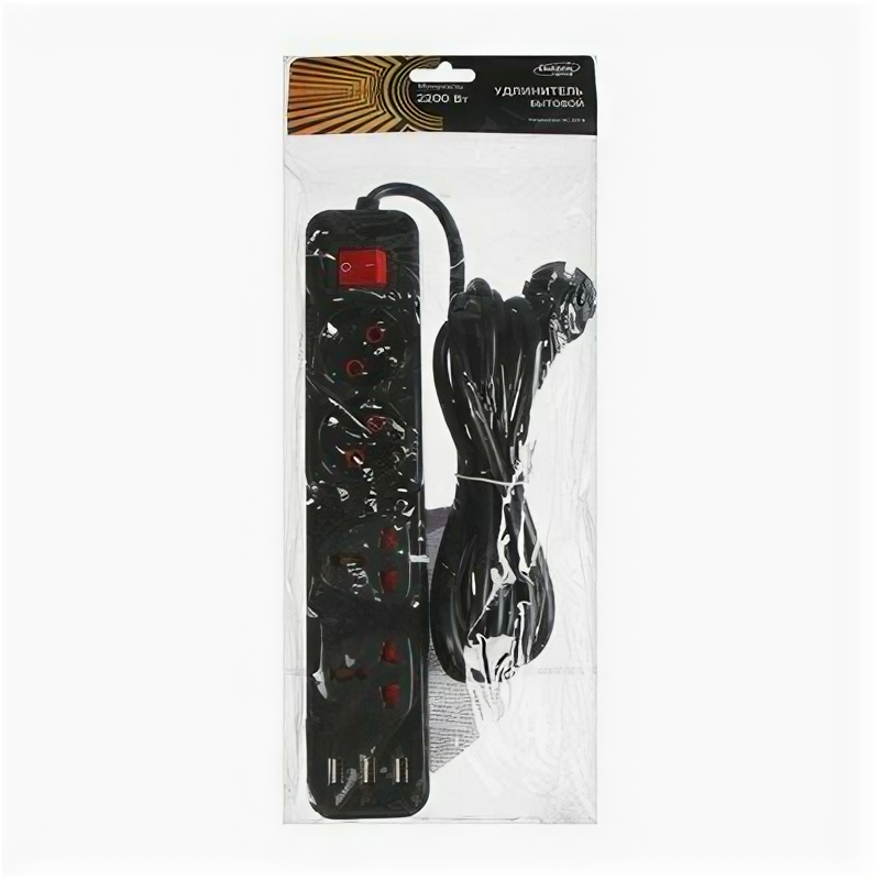 Отзывы на Удлинитель Luazon Lighting, 2 евро+2 унив.роз., 3 м,2200Вт, 3х0.5 мм2, 3хUSB, с выкл., Ч