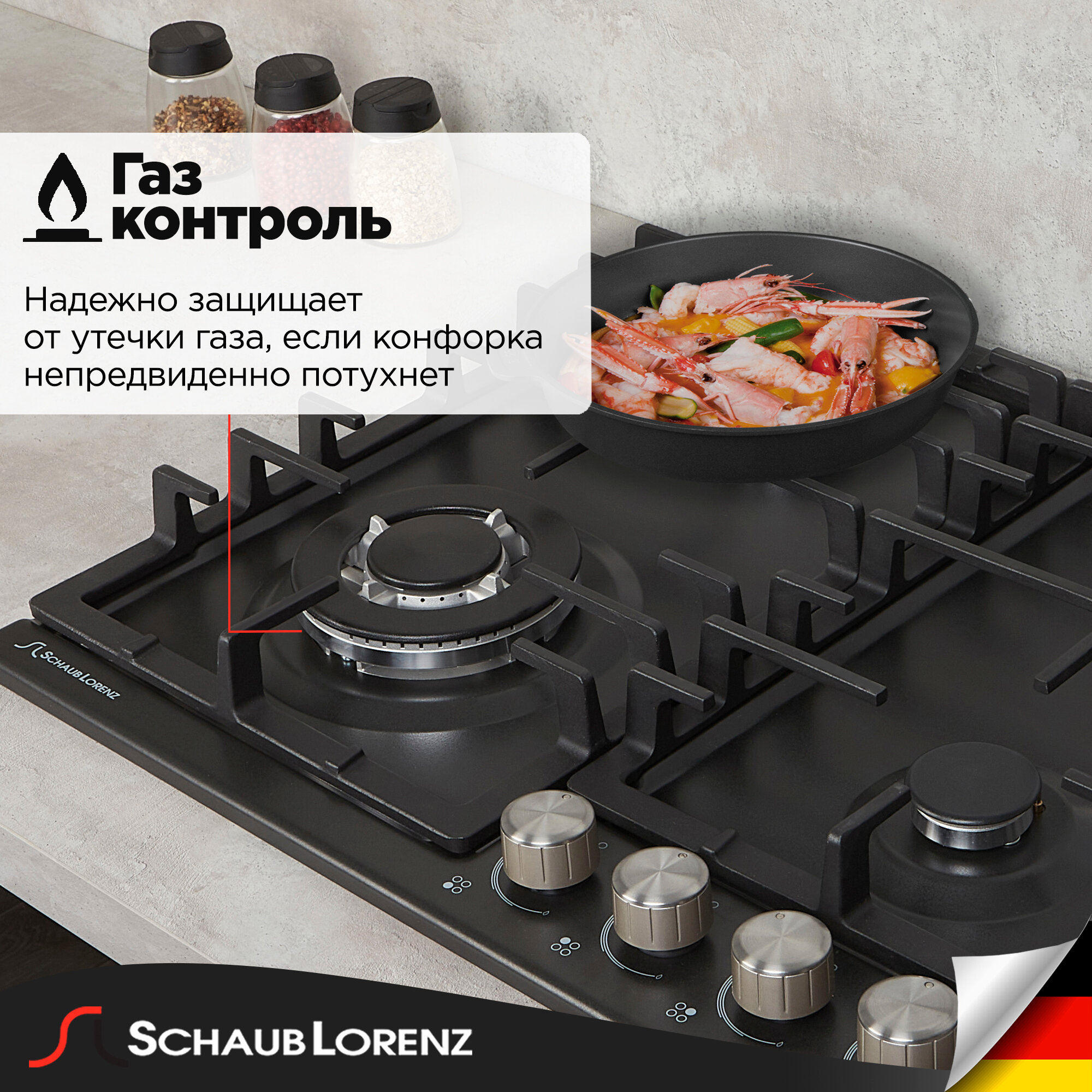 10 цен на Газовая варочная панель Schaub Lorenz SLK GS6521, 60 см, газ-контроль, электроподжиг, WOK
