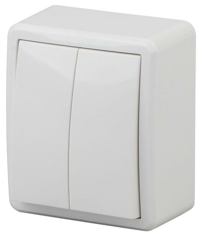 Выключатель двухклавишный Bylectrica Пралеска, брызгозащищенный, открытой установки, 6А, 250В, белый. А5 6-224.