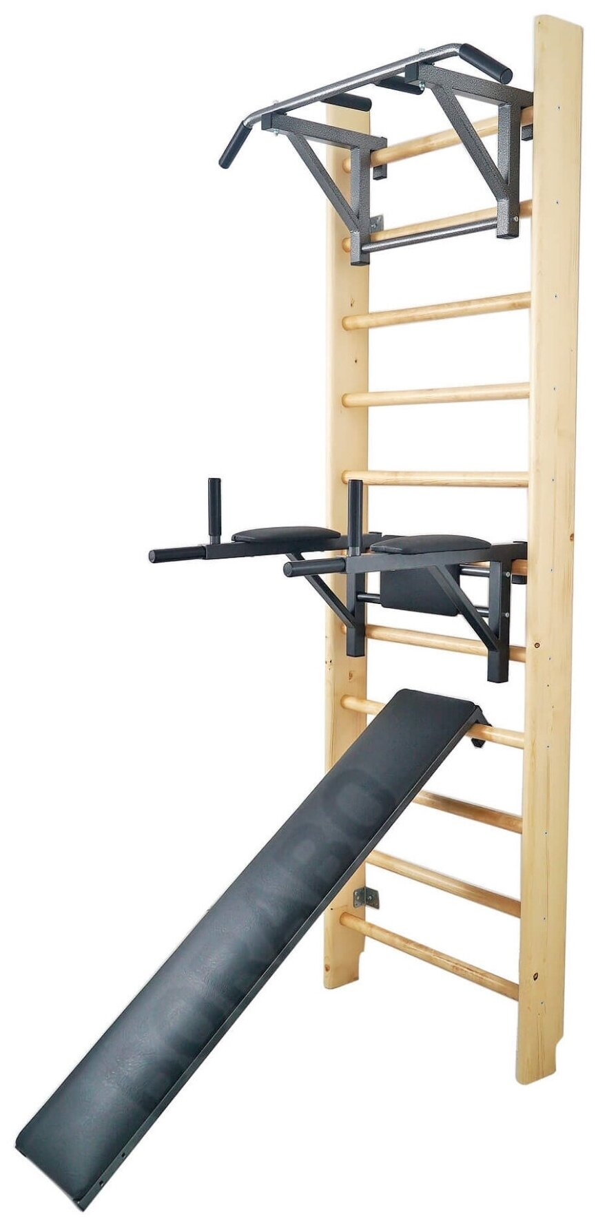 Отзывы на Шведская стенка деревяннаяиз сосны 260x80x14 см + Турник +Брусья Пресс + Доска угловая Антик