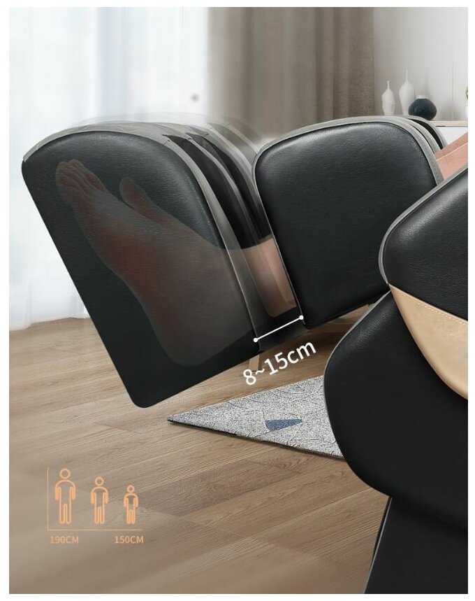 | Регулировки | зона массажа / интенсивность массажа / настройка под рост / угол наклона подставки для ног / угол наклона спинки / ширина между роликами |