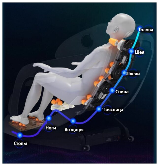 | Зона массажа | бедра / голени / голова / колени / ноги / плечи / поясница / руки / спина / стопы / талия / шея / ягодицы |
