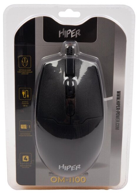 Проводная мышь HIPER OM-1100 / 1600 dpi / 4 кнопки / 125 Гц / 1,8 м информация: