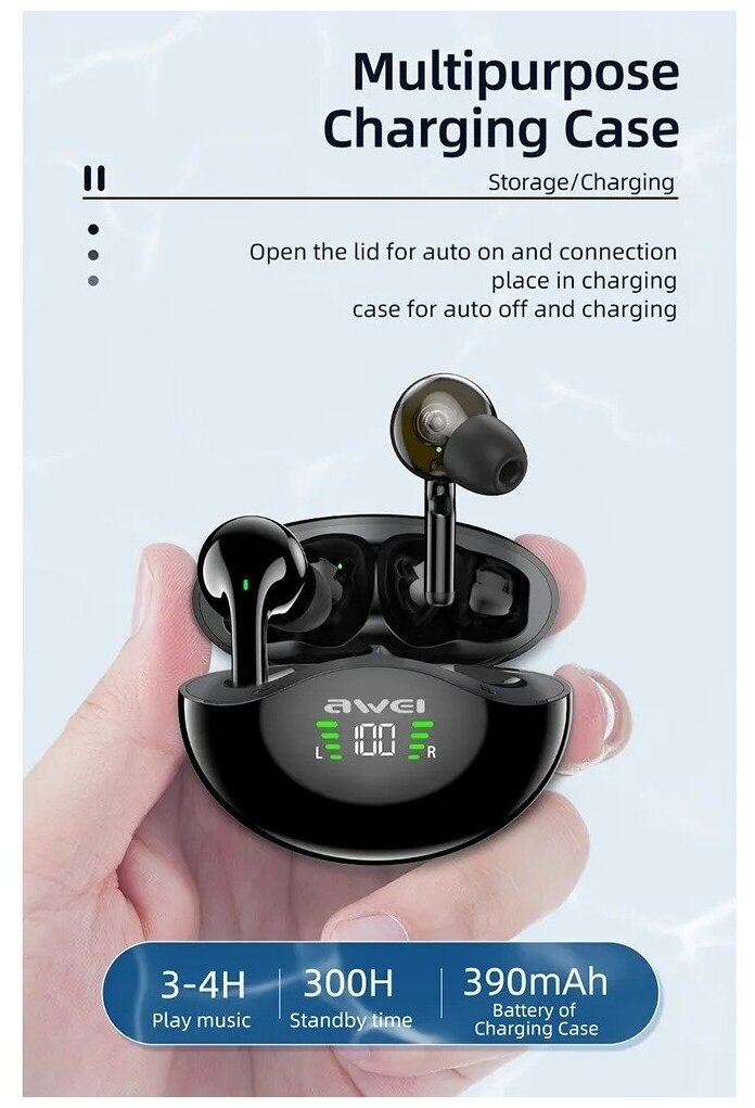 Отзывы на Беспроводные TWS bluetooth наушники AWEI T12P/ Super Bass 4 динамика/ черный