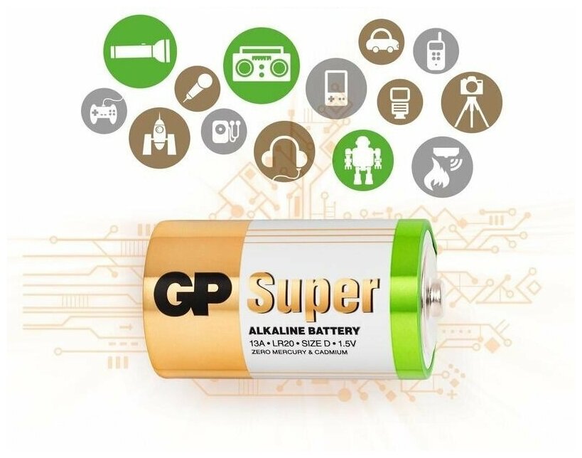 10 цен на Батарейки GP Super, комплект 4 шт., D (LR20, 13А), алкалиновые, блистер, 13A-2CR2