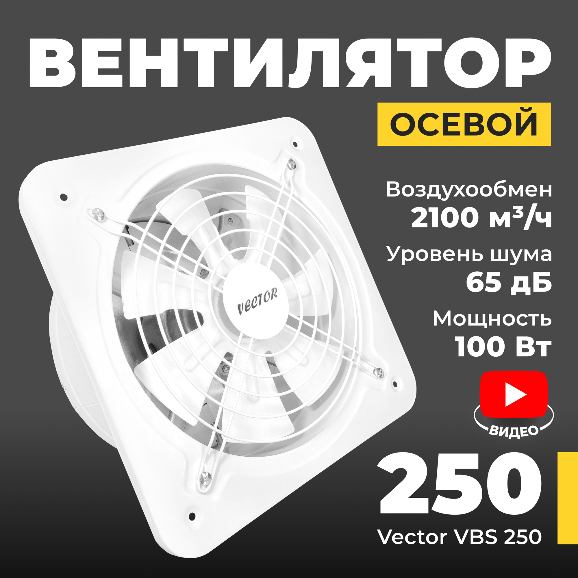 Отзывы на Вентилятор вытяжной промышленный Vector VBS250 с обратным клапаном, воздухообмен 1700 м3/ч, 90Вт, белый