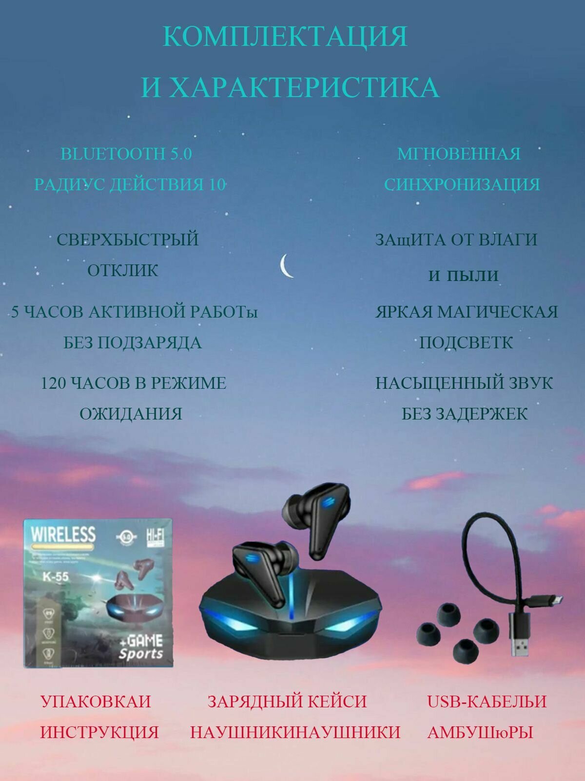 беспроводные наушники K55 микрофоном игровые TWS 5.2 IPhone, Android Гарнитура информация: