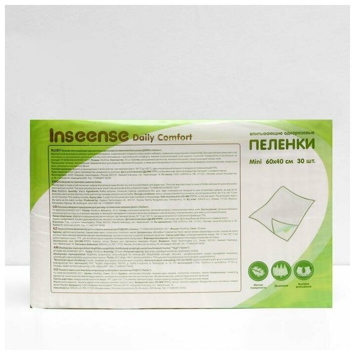 Пеленки одноразовые INSEENSE Daily Comfort 60х40 30 шт информация: