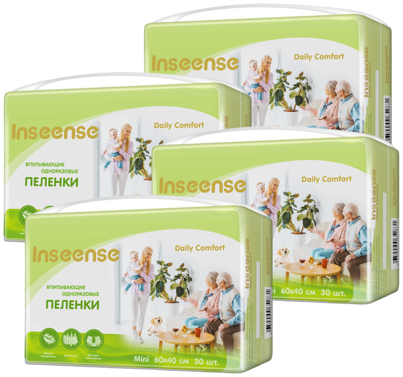 Отзывы на Пеленки одноразовые Inseense Daily Comfort 60 х 40 см 30 шт упаковка 4 шт