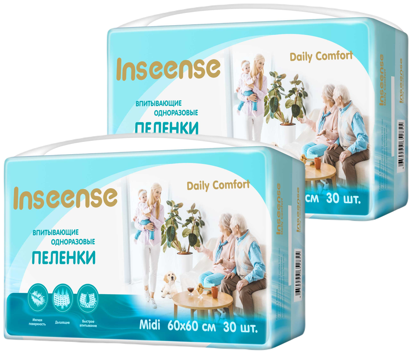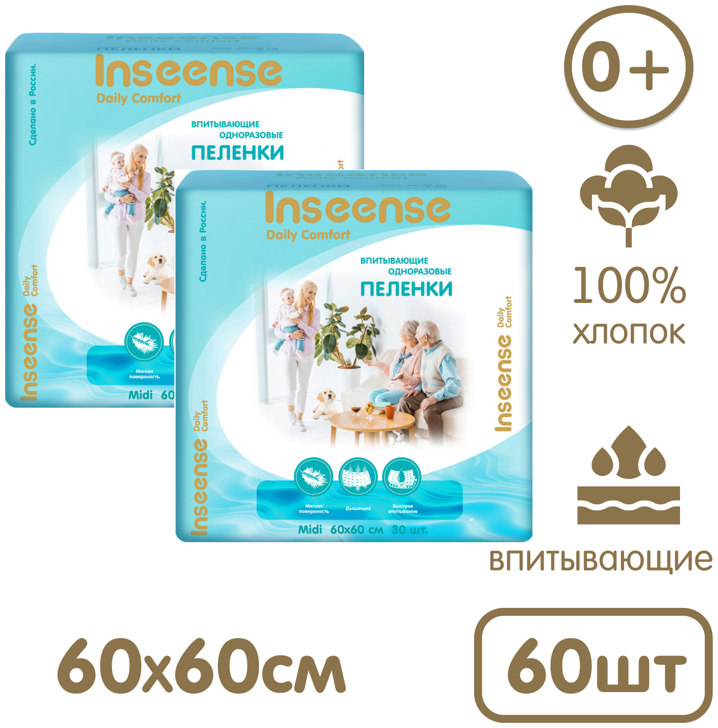 Пеленки INSEENSE Daily Comfort впитывающие одноразовые 60х60 60шт информация: