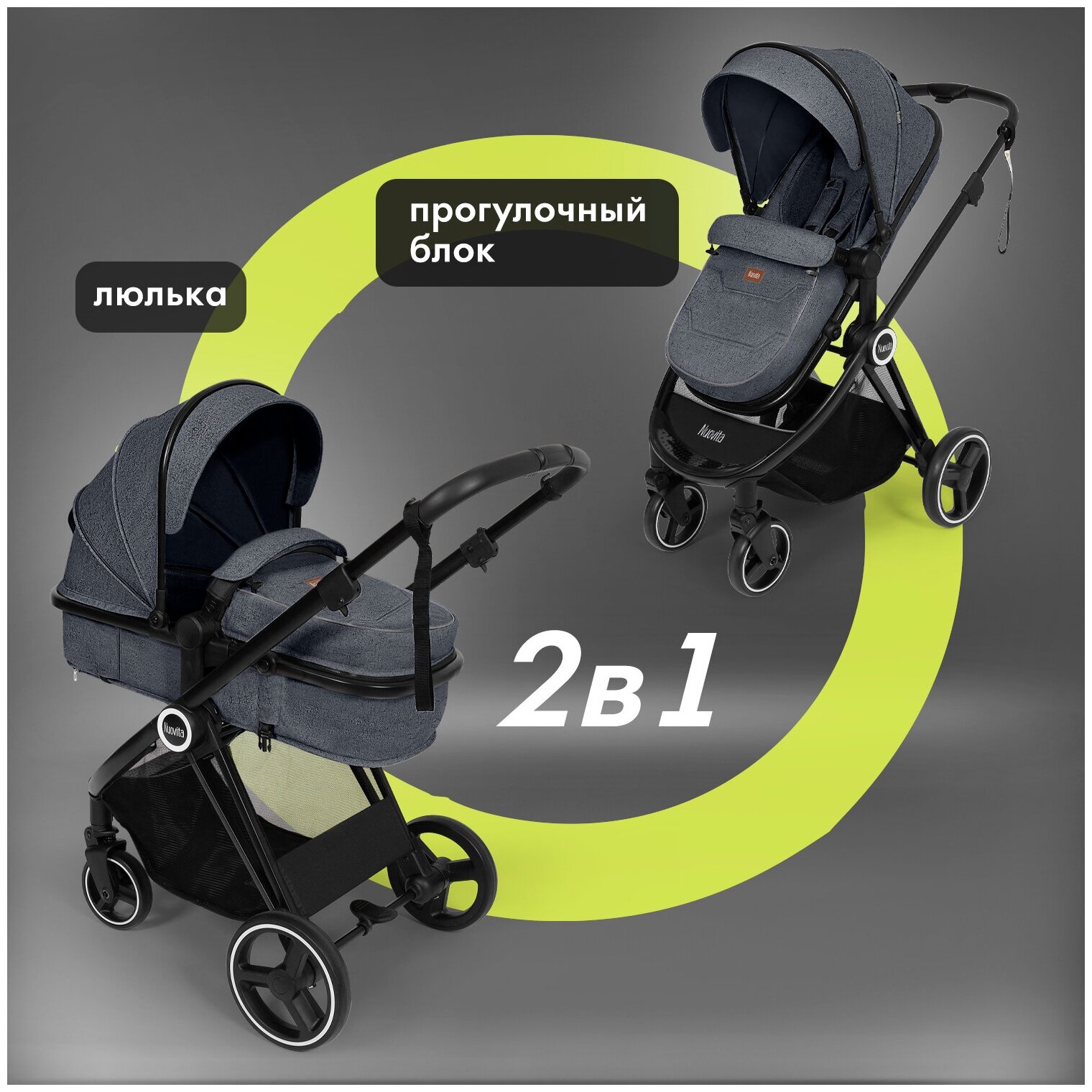 Детская коляска Nuovita Luno 2 в 1 (Grafite/Графитовый) информация: