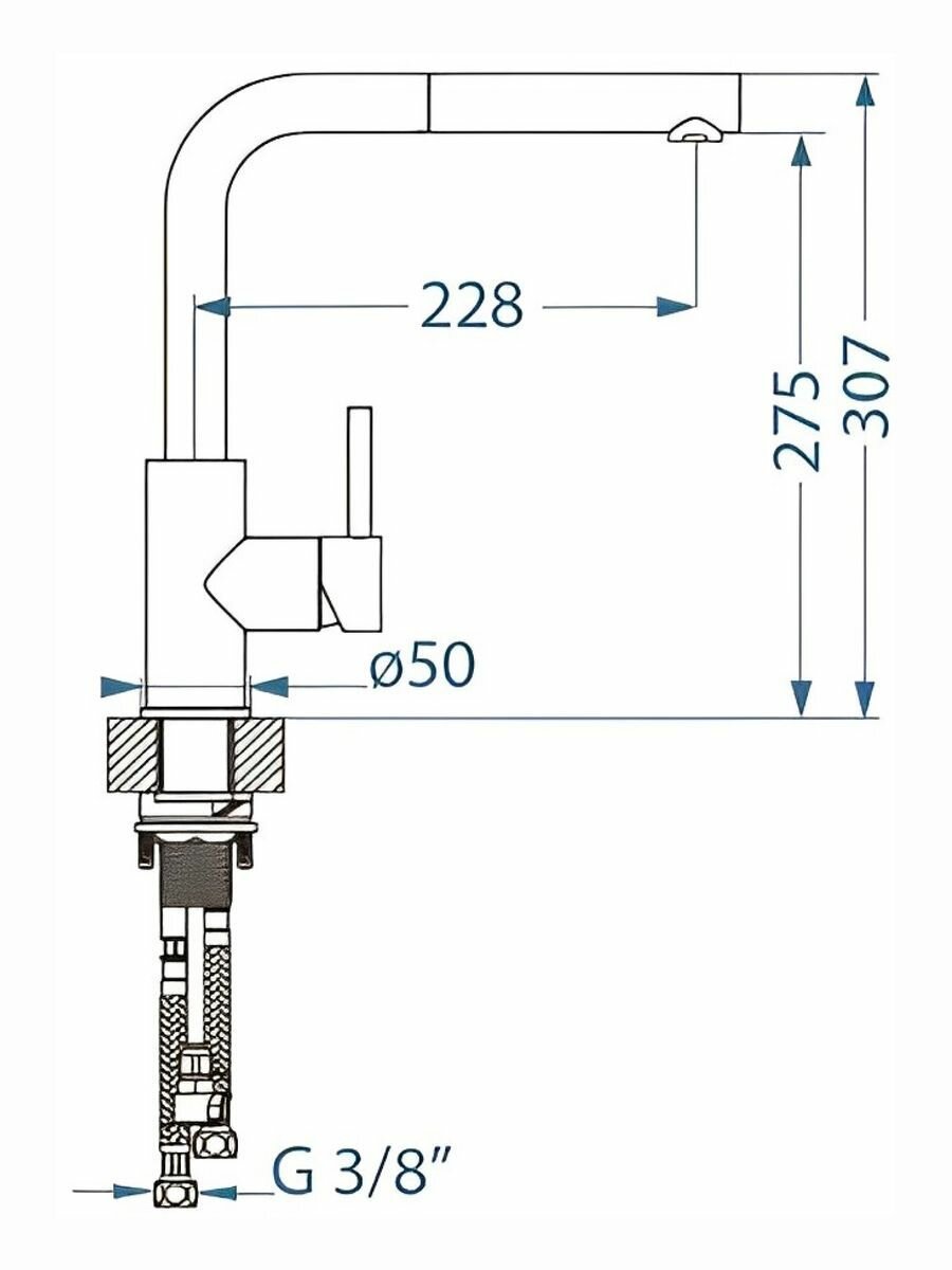 Смеситель для кухни с подключением к фильтру с питьевой водой из нержавеющей стали SUS304 Calorie CAL50116-3