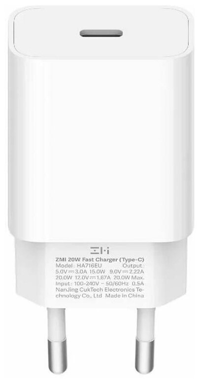 Сетевое зарядное устройство Xiaomi ZMI HA716, USB type-C, 3A, белый [ha716 white] информация: