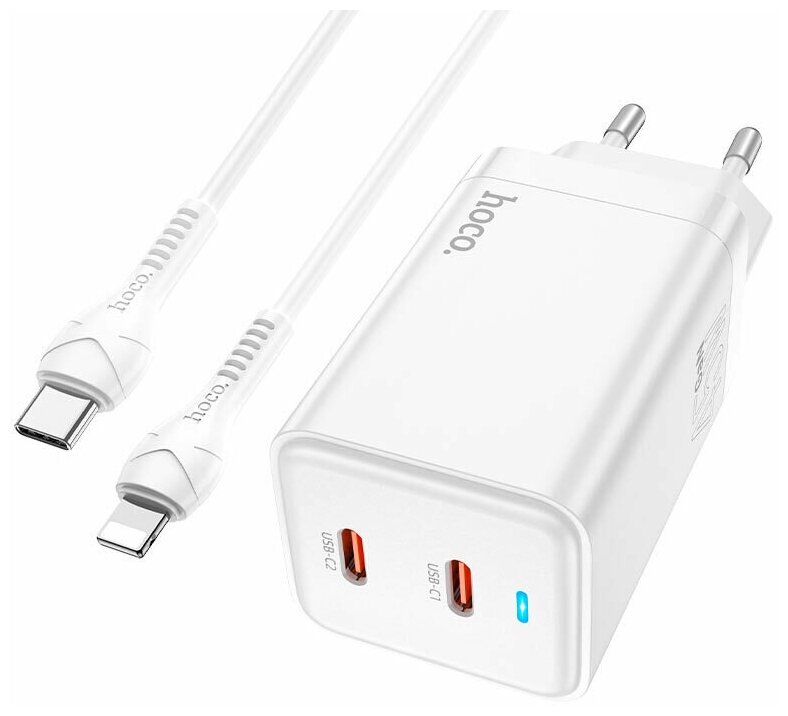 Зарядное устройство GaN PD 2xType-C 45W с кабелем Lightning, адаптер сетевой, блок питания с быстрой зарядкой для Apple Айфон / iPhone информация: