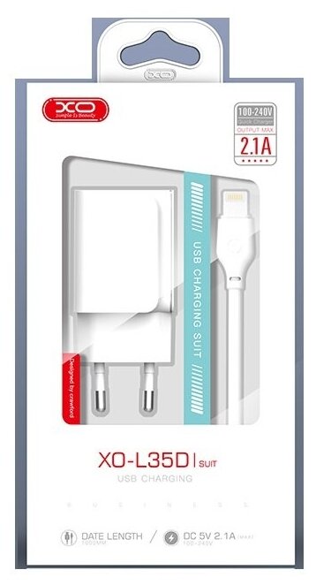 Сетевое зарядное устройство + кабель Type-C XO L35D 2USB 2.1A белый информация: