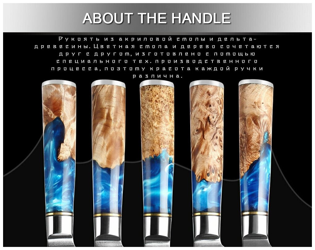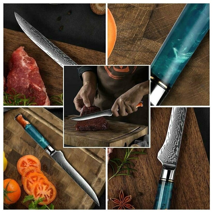 Отзывы на Кухонный обвалочный нож TuoTown BO150 TWB-D4, рукоять синий акрил+дерево, клинок 15см (VG10-Damascus).