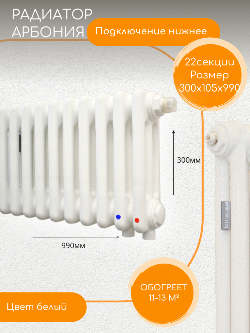 Отзывы на Стальной трубчатый Радиатор Arbonia 3030 Нижнее подключение; Количество секций:22 Цвет: Белый