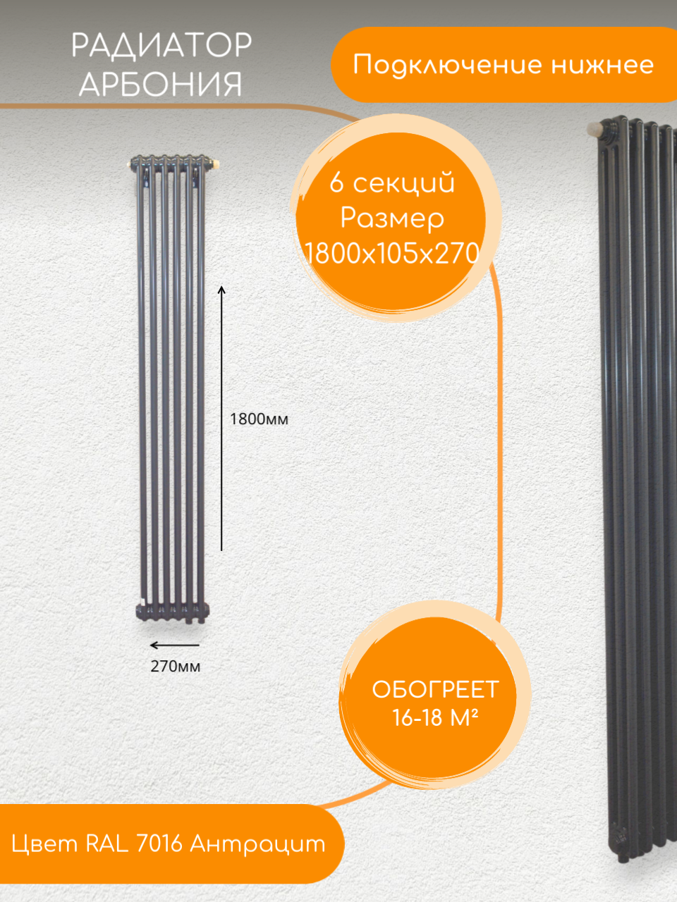 Отзывы на Стальной трубчатый Радиатор Arbonia 3180 Нижнее подключение; Количество секций:6 RAL 7016