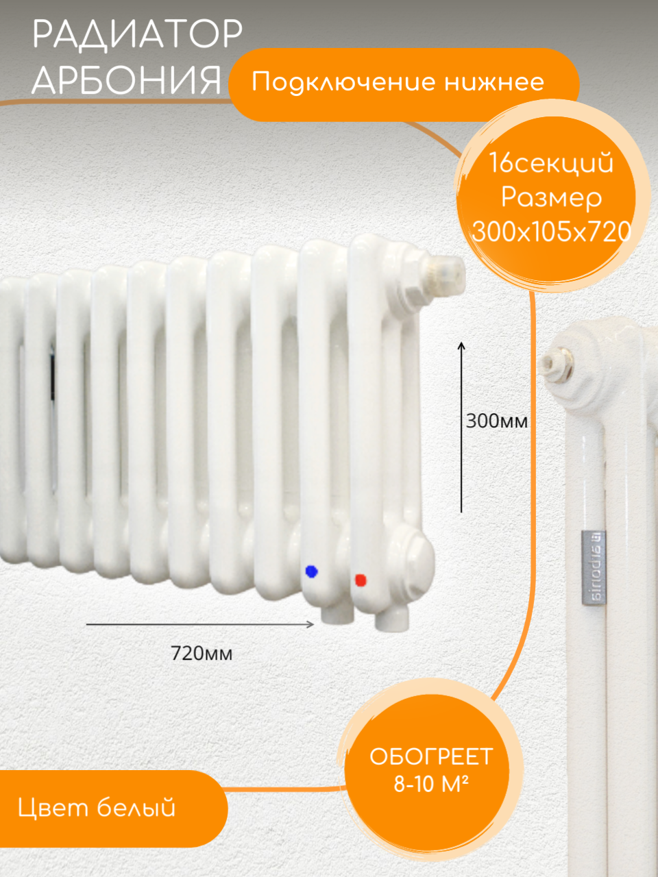 Отзывы на Стальной трубчатый Радиатор Arbonia 3030 Нижнее подключение; Количество секций:16 Цвет: Белый
