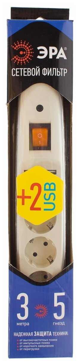Сетевой фильтр ЭРА USF-5es-1.5m-USB-B