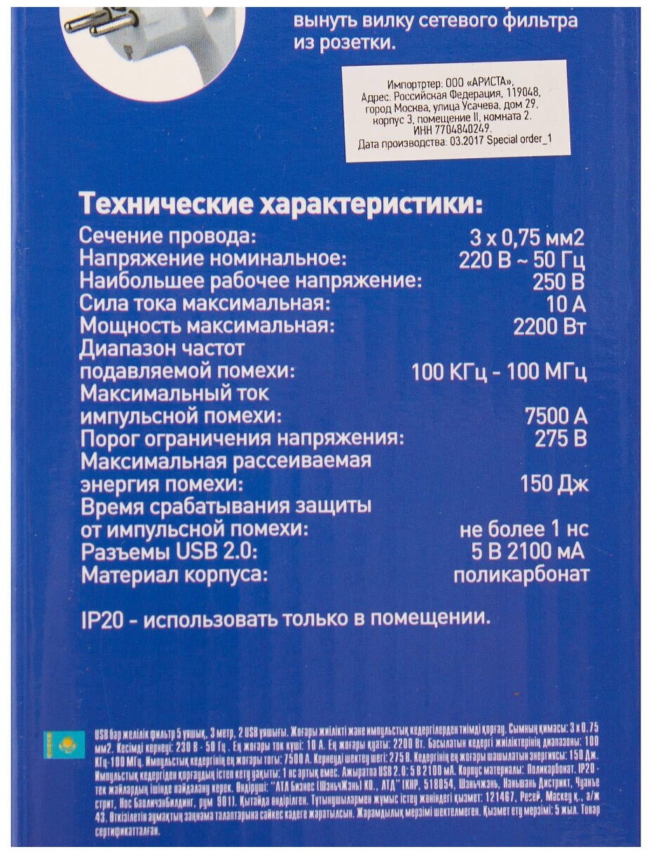 Сетевой фильтр SFU 5 розеток 3 м цвет бежевый информация: