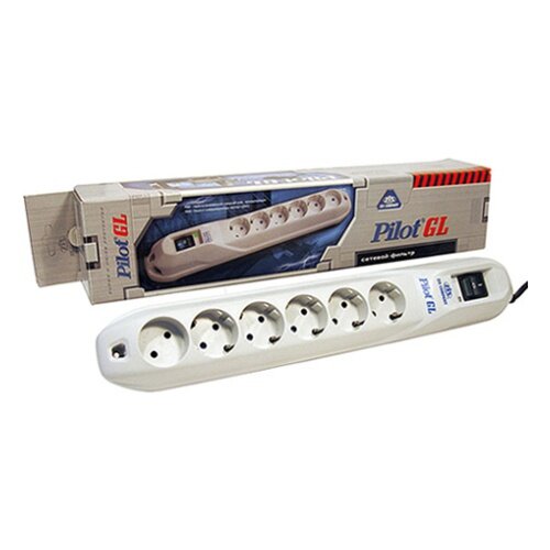 Сетевой фильтр Pilot GL, 3м, белый [pilot-gl 6 роз.3m] информация: