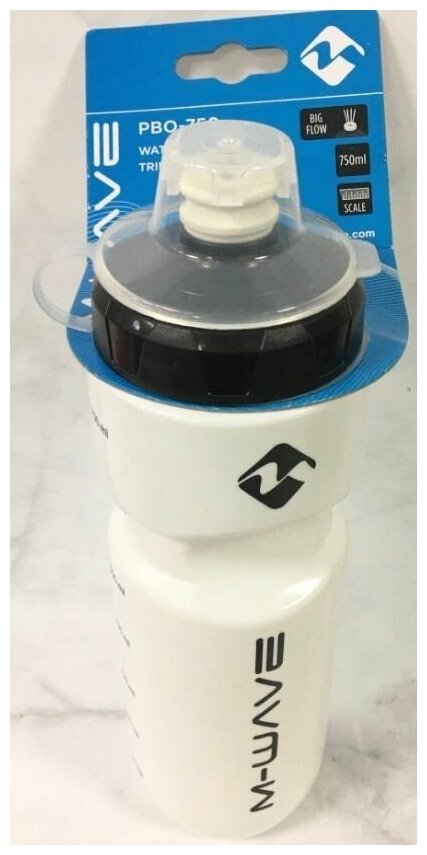 Фляга велосипедная пластиковая 0,75л с крышкой, с широким соском, белая M-WAVE информация: