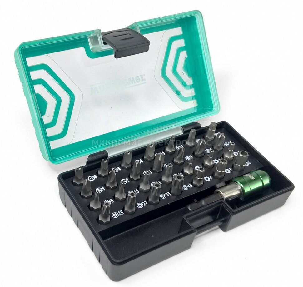 | Биты подробно | TH- 8, 10, 15, 20, 25, 27,30, 40; HEX с отверстием- 2.0, 2.5, 3.0, 4.0, 5.0, 6.0; SQ - 1, 2, 3; 4, spanner 6, 8, 10; 3V- 1, 2, 3, 4; 4V - 6, 8, 10. |