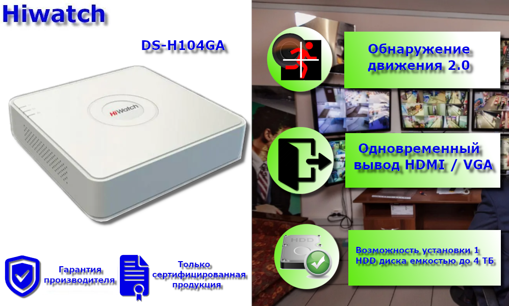 AHD видеорегистраторы HiWatch DS-H104GA информация: