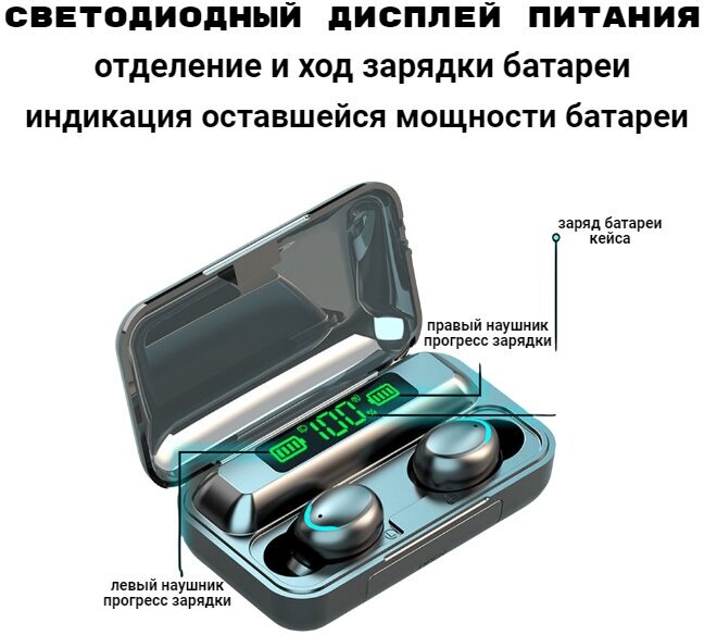 Наушники беспроводные TWS F9-5 с зарядным кейсом информация: