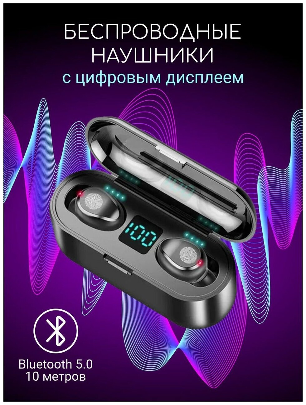 Отзывы на Беспроводные водонепроницаемые сенсорные Bluetooth наушники F9-5.1 TWS для Айфона и Андроида цвет голубой