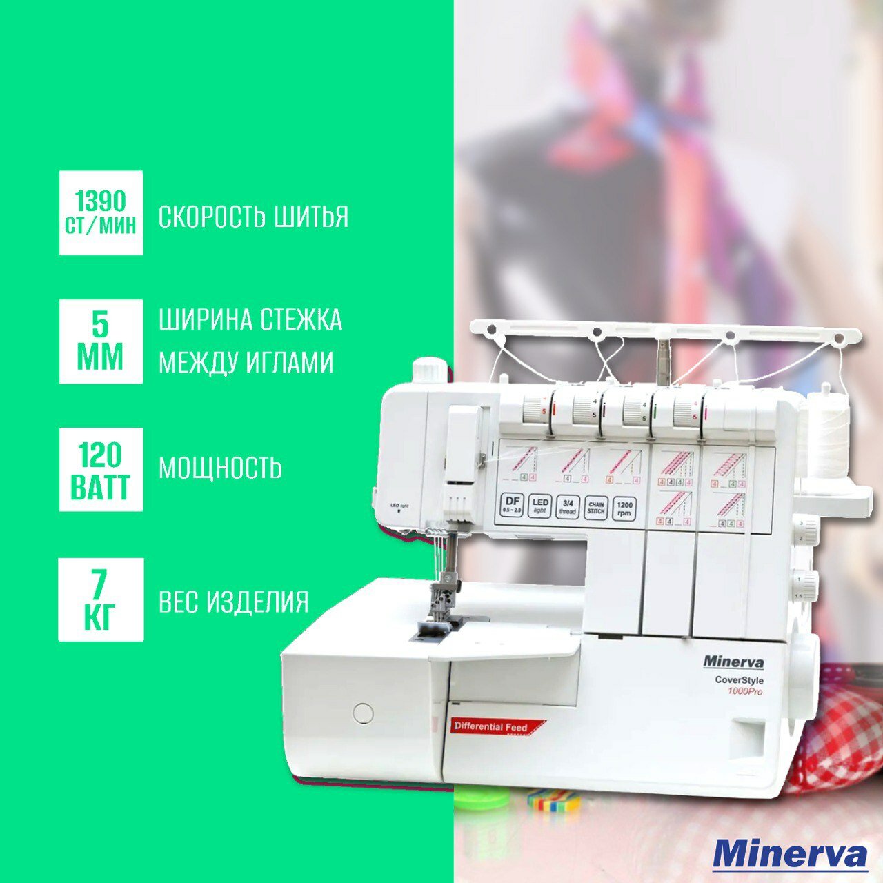 Распошивальная машина Minerva CS M1000Pro / для всех типов тканей / Регулятор давления лапки на ткань / 3,2,1 игольная информация: