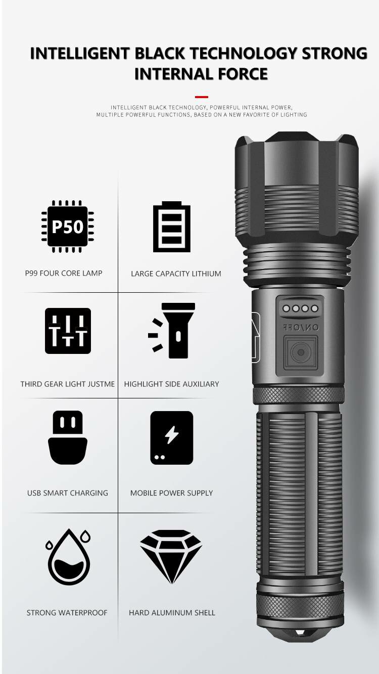 Фонарик ручной с цифровым дисплеем водонепроницаемый/телескопический зум/перезаряжаемый/бликовый фонарик