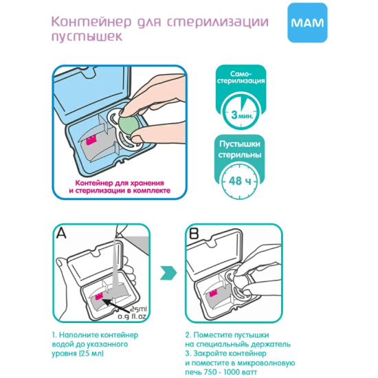 Отзывы на Пустышка силиконовая MAM Air с контейнером голубая и белая 0-6 мес