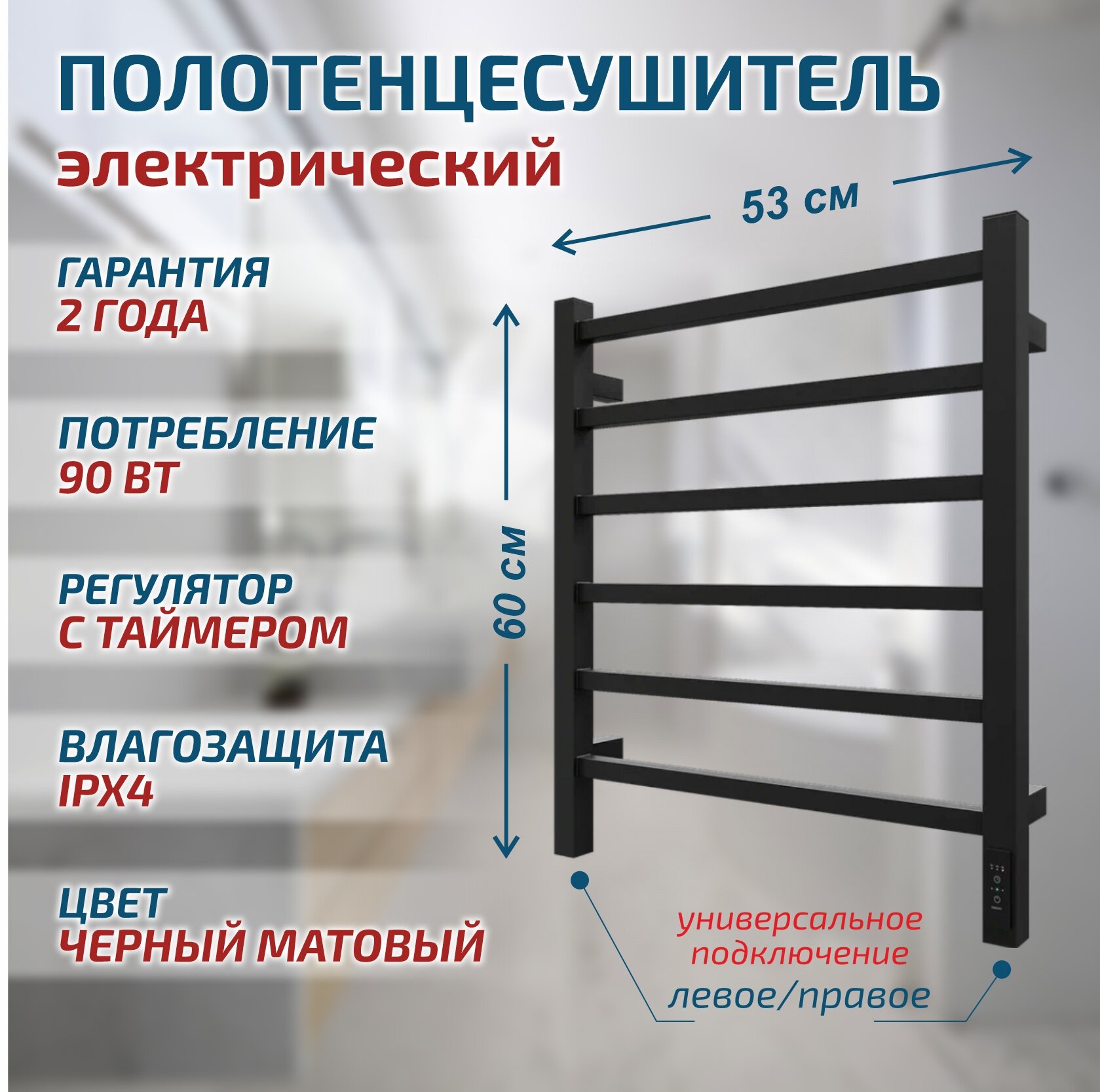 Полотенцесушитель Электрич. с/т GROIS Alex GR-101 500/600 П6 RAL9005 U черный матовый информация:
