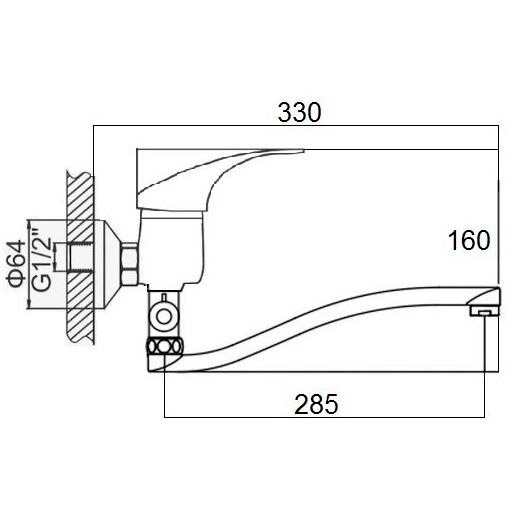 Смеситель на раковину настенный Эверест B46-350 с круглым поворотным изливом, кран-буксы 1/2", хром
