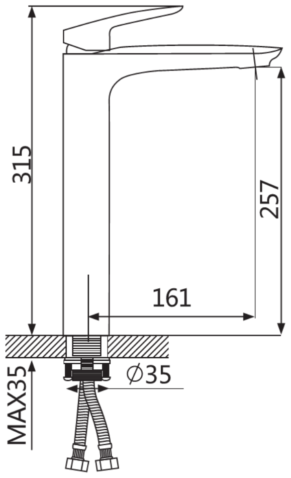 Смеситель для ванны OUTE из нержавеющей стали SUS 304, керамический картридж 35 мм, излив поворотный 35 см.