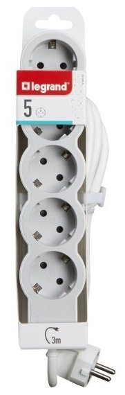 Удлинитель серии Стандарт 5 x 2К+З с кабелем 3 м., цвет: бело-серый () LEGRAND 694563 (1 шт.) информация: