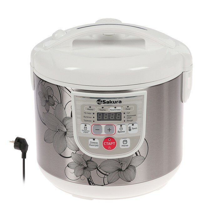 SAKURA Мультиварка Sakura SA-7753W, 800 Вт, 5 л, 37 программ, с антипригарным покрытием информация: