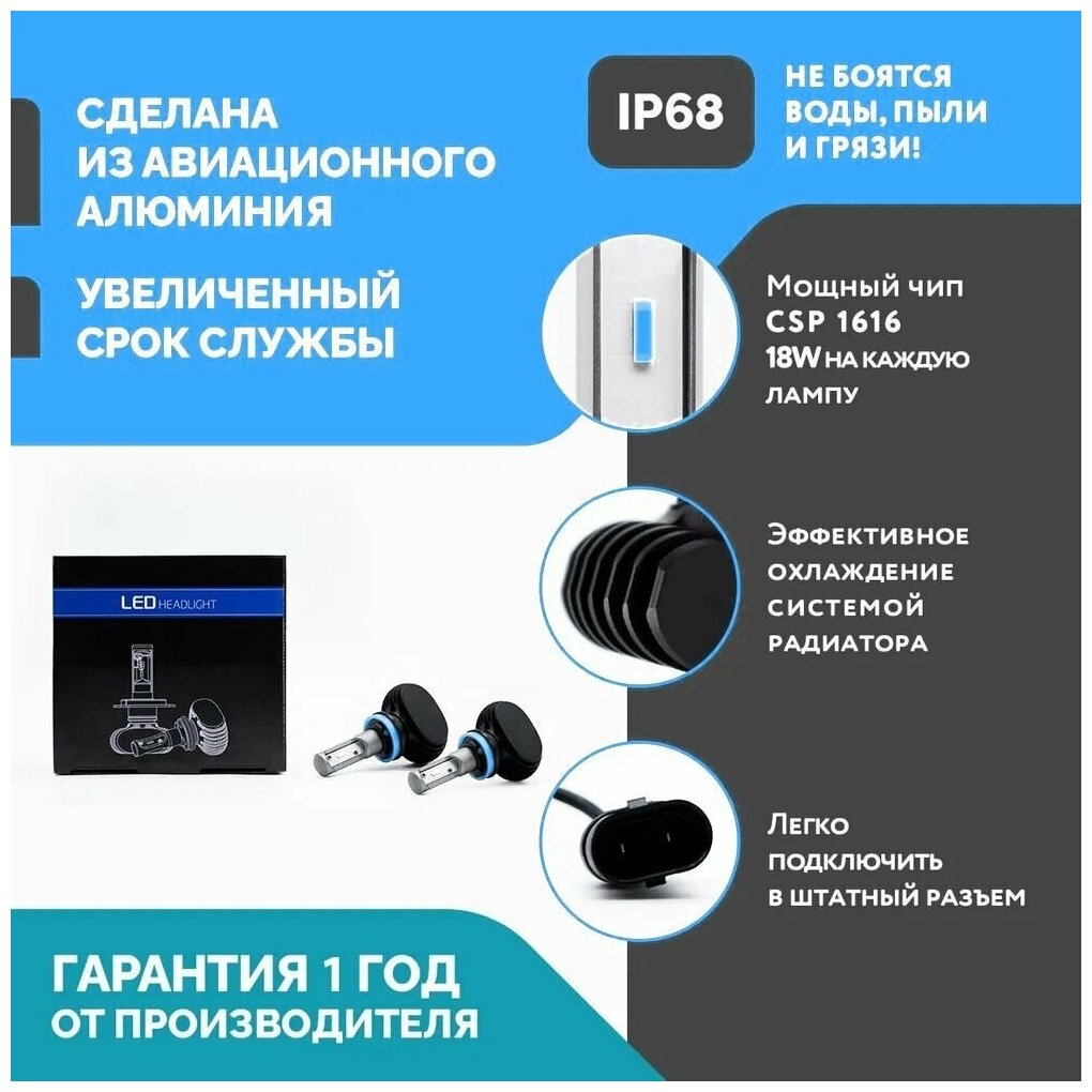 Светодиодные лампы для автомобиля MYX S1 цоколь H11 с напряжением 12V и мощностью 36 W, чип CSP 1616 температура цвета 6000K, цена за 2шт. информация: